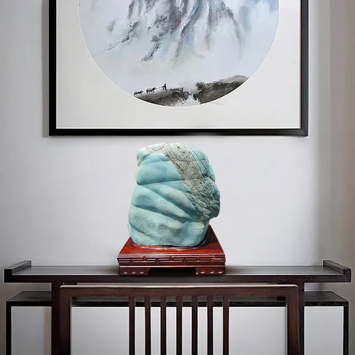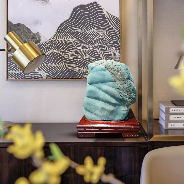• 商品名称:【绿彩陶罗汉】 奇石彩陶石配樟木实木底座摆件博古架案头摆件